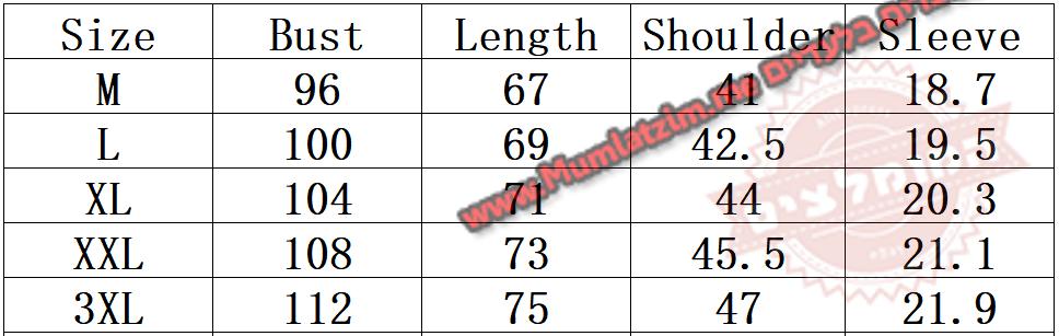 בחירת מידה לפי הטבלה – לקחת 2 מידות מעל ישראל, לוודא