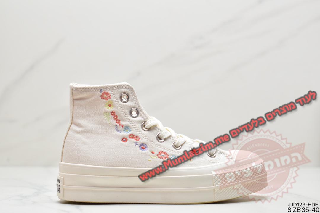 🌟 בלעדי למומלצים! 🌟נעלי קונברס CTAS Lift Platform דגם Embroidered Floral Egret נדיר לנשים 35-40 ב 180₪/54.88$ כולל משלוח!
