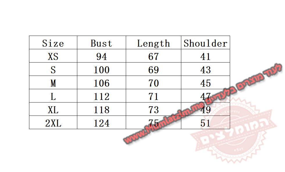 בחירת מידה לפי הטבלה – זהה ישראל!