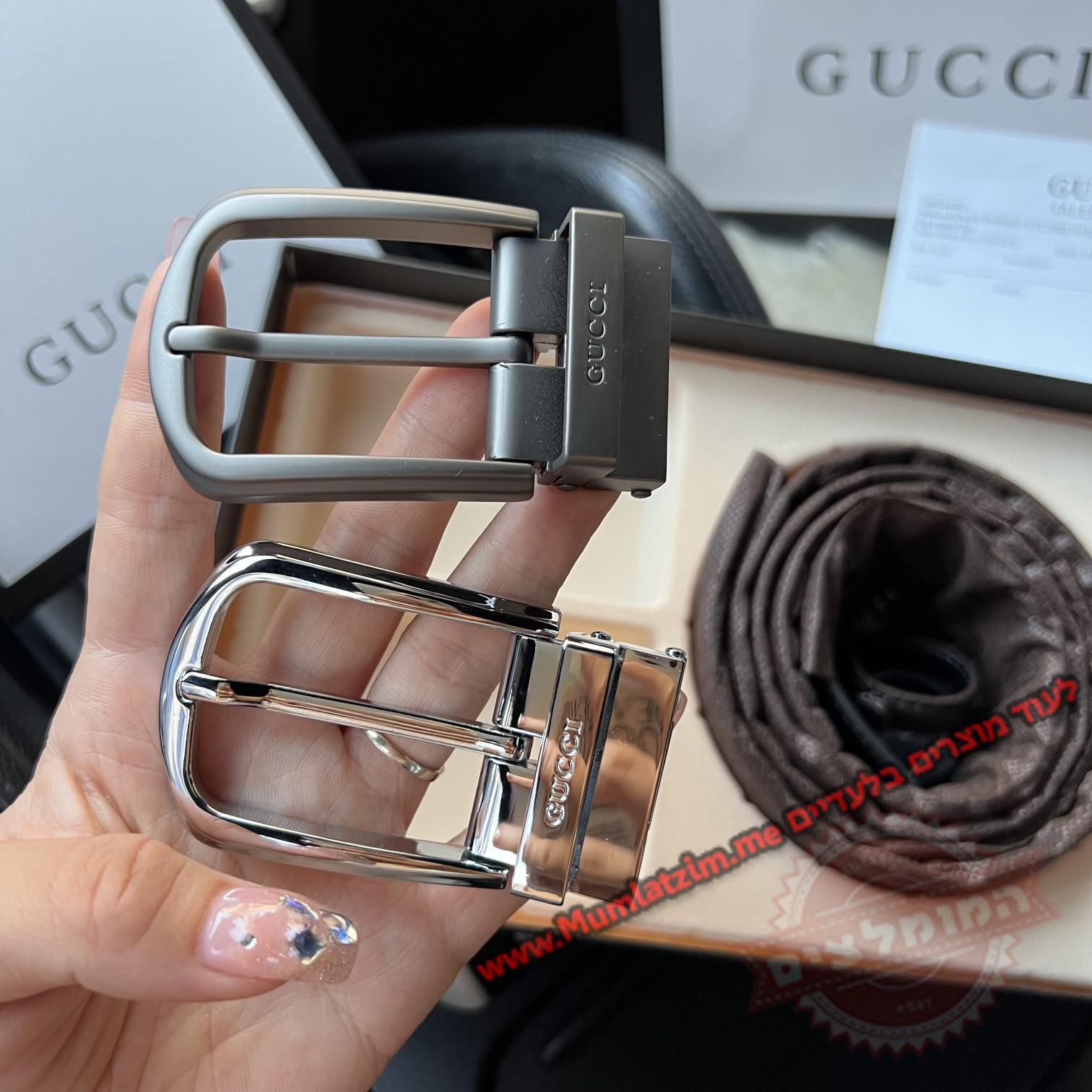 חגורות עור אמיתי גוצ'י לגברים בערכה מלאה עם 2 אבזמים ב 127₪/38.8$