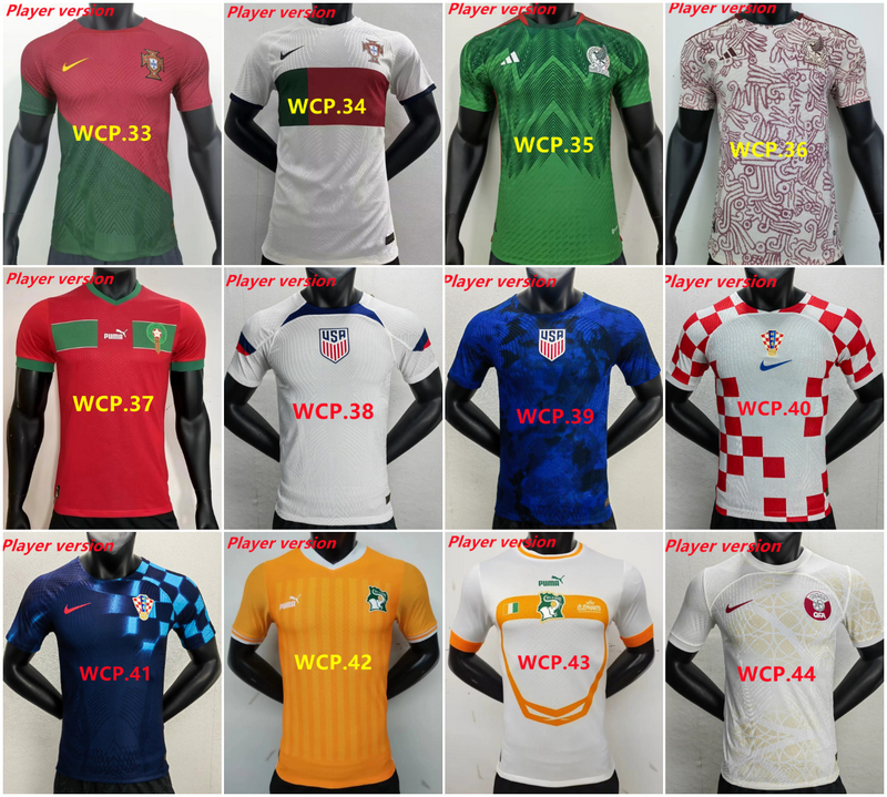 חולצות כדורגל *מונדיאל 2022* גרסאת שחקן לגברים + הדפסת שם ומספר ב 81₪/22.98$