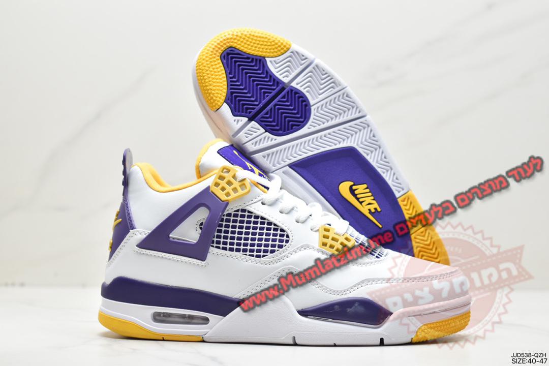 נעלי נייק Air Jordan 4 Retro דגם Lakers Home לייקרס מדהים לגברים 40-46 ב 190₪/55.88$ ⚡עד מידה 46!⚡