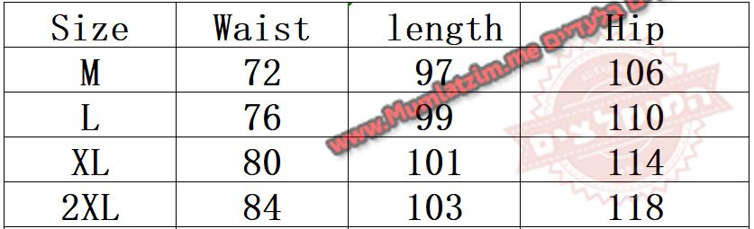 בחירת מידה לפי הטבלה –