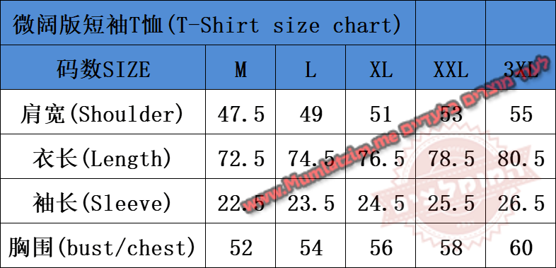בחירת מידה לפי הטבלה –