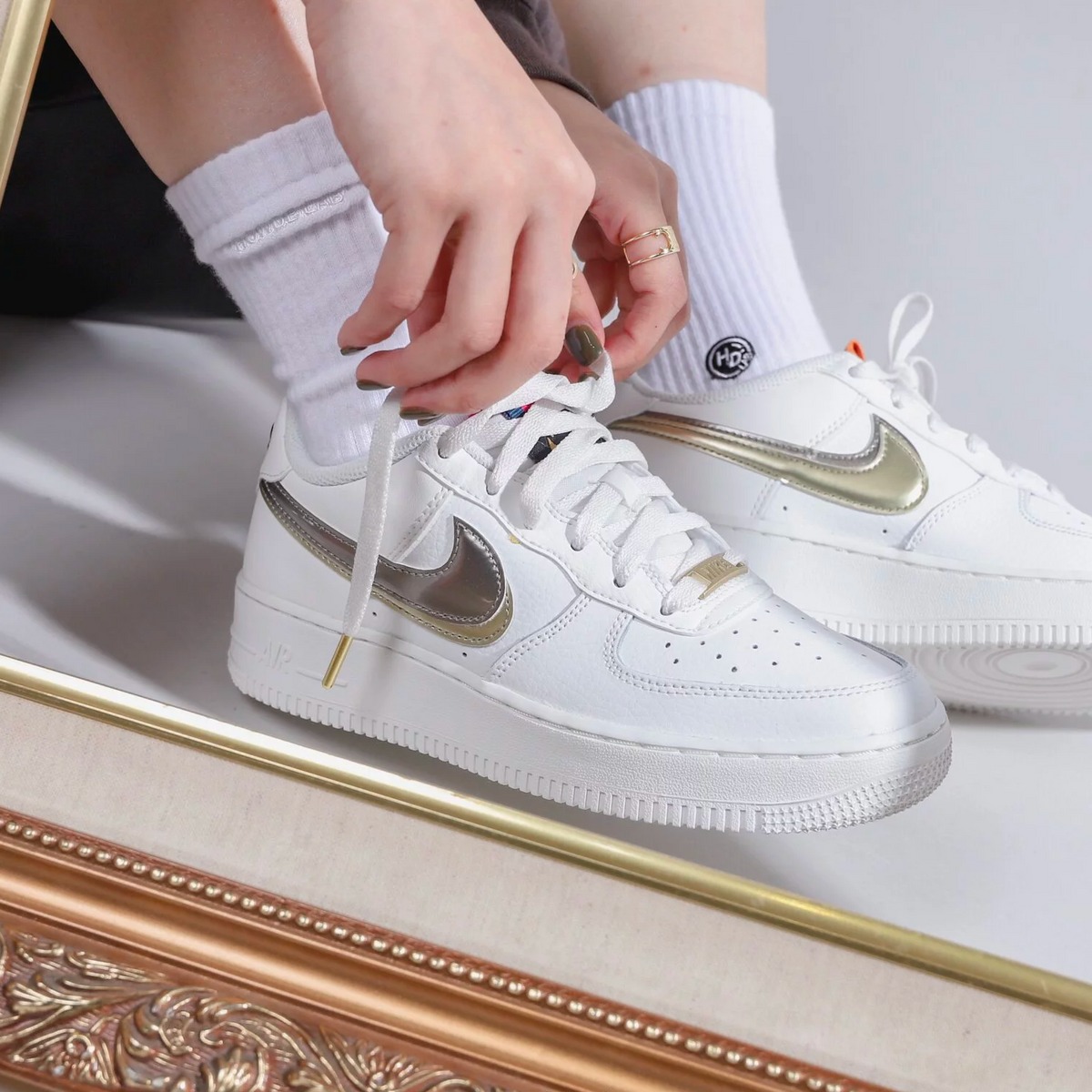 נעלי נייק Air Force 1 Low GS נמוכות דגם Double Swoosh Silver Gold לגברים ונשים 36-45 ב 228₪/63.88$ כולל משלוח!