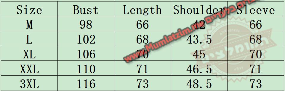 בחירת מידה לפי הטבלה – לקחת 2 מידות מעל ישראל, לוודא