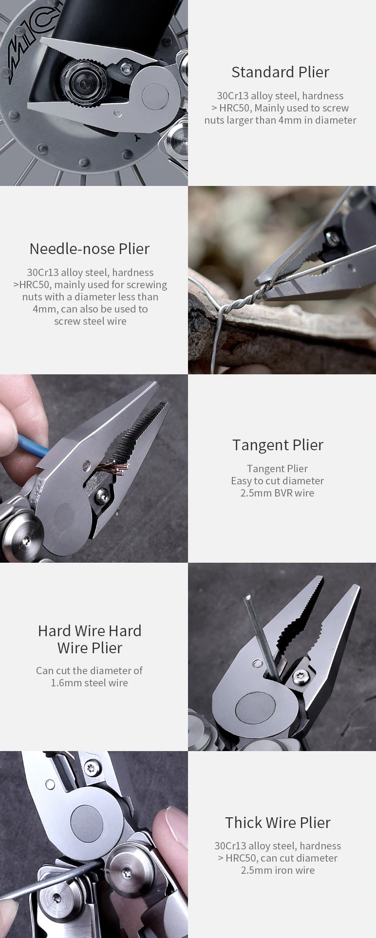 מכיל 65 חלקים שונים מ5 סוגי פלדות שונות, מתקפל ל 11 ס"מ בלבד ושוקל 245 גרם