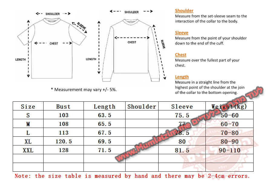 שימו לב – יש לשלוח למוכר בהודעה את הקוד צבע שתרצו לאחר ההזמנה, אין לשלוח תמונה, רק קוד! למשל D1. המוכר ידע לשלוח את הצבע שמופיע בתמונה. יש לבחור אך ורק מידה לפי מה שרשמנו בתיאור המוצר למעלה – אין לבחור מידה שלא רשמנו!
