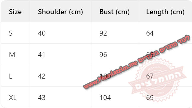 | לקרוא לפני ההזמנה! לא לשלוח למוכר הודעות המכילות תמונות או שמות של מותגים בעלי אקספרס! שליחת הודעות אלה מסכנות את המוכר ועלולות לגרום לסגירת החנות שלו. במידה ויש בעיה – לא לפתוח מחלוקות, לשלוח הודעה בעלי אקספרס למוכר שיש בעיה ואת מספר הווטסאפ שלכם והוא יפנה אליכם ויעזור! בנוסף – ניתן לפתוח קריאת שירות אצלנו ונענה בהקדם – פתיחת קריאה מפה קיבלתם את המוצר? מעולה! בבקשה לא להשאיר פידבק בחנות עם תמונה של המוצר! • המוכר מסתיר את המוצר, בעלי אקספרס כנראה יופיע מוצר אחר, בפועל המוכר יודע לשלוח את המוצר בדיוק כמו בתמונות פה למטה! לא לשלוח שום הודעה אחרת שלא קשורה למידה/החלפת צבע/משלוח – לא לבקש גלרייה/לא לבקש ווטסאפ/לא לרשום דברים שקשורים למותגים – כל מי שיעשה זאת ייחסם על ידי המוכר במידית