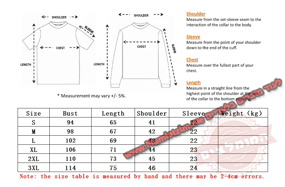 | לקרוא לפני ההזמנה! לא לשלוח למוכר הודעות המכילות תמונות או שמות של מותגים בעלי אקספרס! שליחת הודעות אלה מסכנות את המוכר ועלולות לגרום לסגירת החנות שלו. במידה ויש בעיה – לא לפתוח מחלוקות, לשלוח הודעה בעלי אקספרס למוכר שיש בעיה ואת מספר הווטסאפ שלכם והוא יפנה אליכם ויעזור! בנוסף – ניתן לפתוח קריאת שירות אצלנו ונענה בהקדם – פתיחת קריאה מפה קיבלתם את המוצר? מעולה! בבקשה לא להשאיר פידבק בחנות עם תמונה של המוצר! • המוכר מסתיר את המוצר, בעלי אקספרס כנראה יופיע מוצר אחר, בפועל המוכר יודע לשלוח את המוצר בדיוק כמו בתמונות פה למטה! לא לשלוח שום הודעה אחרת שלא קשורה למידה/החלפת צבע/משלוח – לא לבקש גלרייה/לא לבקש ווטסאפ/לא לרשום דברים שקשורים למותגים – כל מי שיעשה זאת ייחסם על ידי המוכר במידית