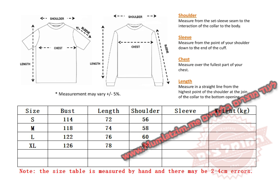 | לקרוא לפני ההזמנה! לא לשלוח למוכר הודעות המכילות תמונות או שמות של מותגים בעלי אקספרס! שליחת הודעות אלה מסכנות את המוכר ועלולות לגרום לסגירת החנות שלו. במידה ויש בעיה – לא לפתוח מחלוקות, לשלוח הודעה בעלי אקספרס למוכר שיש בעיה ואת מספר הווטסאפ שלכם והוא יפנה אליכם ויעזור! בנוסף – ניתן לפתוח קריאת שירות אצלנו ונענה בהקדם – פתיחת קריאה מפה קיבלתם את המוצר? מעולה! בבקשה לא להשאיר פידבק בחנות עם תמונה של המוצר! • המוכר מסתיר את המוצר, בעלי אקספרס כנראה יופיע מוצר אחר, בפועל המוכר יודע לשלוח את המוצר בדיוק כמו בתמונות פה למטה! לא לשלוח שום הודעה אחרת שלא קשורה למידה/החלפת צבע/משלוח – לא לבקש גלרייה/לא לבקש ווטסאפ/לא לרשום דברים שקשורים למותגים – כל מי שיעשה זאת ייחסם על ידי המוכר במידית