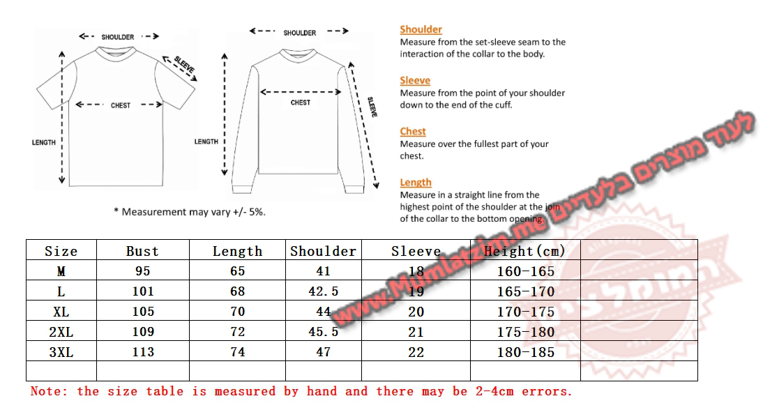 לקרוא לפני ההזמנה! לא לשלוח למוכר הודעות המכילות תמונות או שמות של מותגים בעלי אקספרס! שליחת הודעות אלה מסכנות את המוכר ועלולות לגרום לסגירת החנות שלו. במידה ויש בעיה – לא לפתוח מחלוקות, לשלוח הודעה בעלי אקספרס למוכר שיש בעיה ואת מספר הווטסאפ שלכם והוא יפנה אליכם ויעזור! בנוסף – ניתן לפתוח קריאת שירות אצלנו ונענה בהקדם – פתיחת קריאה מפה קיבלתם את המוצר? מעולה! בבקשה לא להשאיר פידבק בחנות עם תמונה של המוצר! • המוכר מסתיר את המוצר, בעלי אקספרס כנראה יופיע מוצר אחר, בפועל המוכר יודע לשלוח את המוצר בדיוק כמו בתמונות פה למטה! לא לשלוח שום הודעה אחרת שלא קשורה למידה/החלפת צבע/משלוח – לא לבקש גלרייה/לא לבקש ווטסאפ/לא לרשום דברים שקשורים למותגים – כל מי שיעשה זאת ייחסם על ידי המוכר במידית