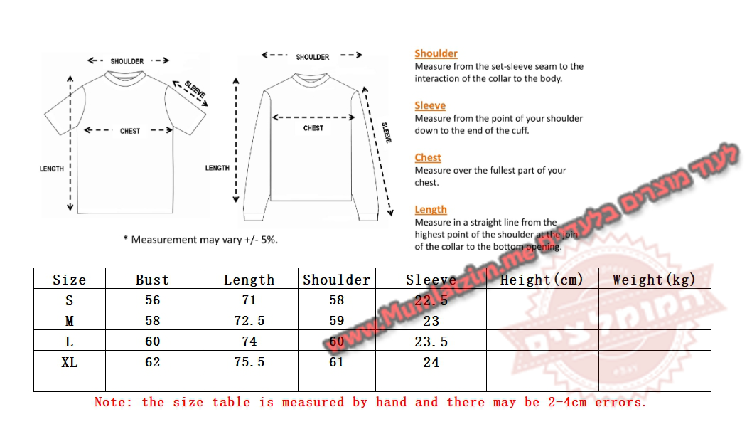| לקרוא לפני ההזמנה! לא לשלוח למוכר הודעות המכילות תמונות או שמות של מותגים בעלי אקספרס! שליחת הודעות אלה מסכנות את המוכר ועלולות לגרום לסגירת החנות שלו. במידה ויש בעיה – לא לפתוח מחלוקות, לשלוח הודעה בעלי אקספרס למוכר שיש בעיה ואת מספר הווטסאפ שלכם והוא יפנה אליכם ויעזור! בנוסף – ניתן לפתוח קריאת שירות אצלנו ונענה בהקדם – פתיחת קריאה מפה קיבלתם את המוצר? מעולה! בבקשה לא להשאיר פידבק בחנות עם תמונה של המוצר! • המוכר מסתיר את המוצר, בעלי אקספרס כנראה יופיע מוצר אחר, בפועל המוכר יודע לשלוח את המוצר בדיוק כמו בתמונות פה למטה! לא לשלוח שום הודעה אחרת שלא קשורה למידה/החלפת צבע/משלוח – לא לבקש גלרייה/לא לבקש ווטסאפ/לא לרשום דברים שקשורים למותגים – כל מי שיעשה זאת ייחסם על ידי המוכר במידית