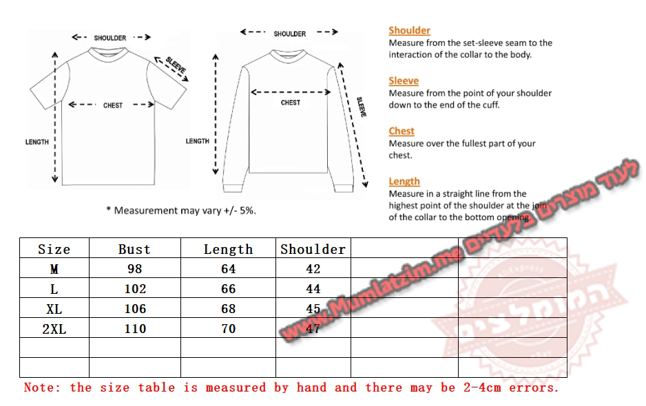 | לקרוא לפני ההזמנה! לא לשלוח למוכר הודעות המכילות תמונות או שמות של מותגים בעלי אקספרס! שליחת הודעות אלה מסכנות את המוכר ועלולות לגרום לסגירת החנות שלו. במידה ויש בעיה – לא לפתוח מחלוקות, לשלוח הודעה בעלי אקספרס למוכר שיש בעיה ואת מספר הווטסאפ שלכם והוא יפנה אליכם ויעזור! בנוסף – ניתן לפתוח קריאת שירות אצלנו ונענה בהקדם – פתיחת קריאה מפה קיבלתם את המוצר? מעולה! בבקשה לא להשאיר פידבק בחנות עם תמונה של המוצר! • המוכר מסתיר את המוצר, בעלי אקספרס כנראה יופיע מוצר אחר, בפועל המוכר יודע לשלוח את המוצר בדיוק כמו בתמונות פה למטה! לא לשלוח שום הודעה אחרת שלא קשורה למידה/החלפת צבע/משלוח – לא לבקש גלרייה/לא לבקש ווטסאפ/לא לרשום דברים שקשורים למותגים – כל מי שיעשה זאת ייחסם על ידי המוכר במידית