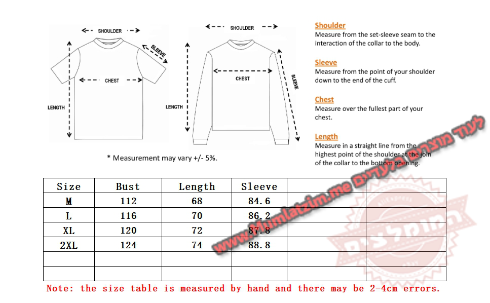 | לקרוא לפני ההזמנה! לא לשלוח למוכר הודעות המכילות תמונות או שמות של מותגים בעלי אקספרס! שליחת הודעות אלה מסכנות את המוכר ועלולות לגרום לסגירת החנות שלו. במידה ויש בעיה – לא לפתוח מחלוקות, לשלוח הודעה בעלי אקספרס למוכר שיש בעיה ואת מספר הווטסאפ שלכם והוא יפנה אליכם ויעזור! בנוסף – ניתן לפתוח קריאת שירות אצלנו ונענה בהקדם – פתיחת קריאה מפה קיבלתם את המוצר? מעולה! בבקשה לא להשאיר פידבק בחנות עם תמונה של המוצר! • המוכר מסתיר את המוצר, בעלי אקספרס כנראה יופיע מוצר אחר, בפועל המוכר יודע לשלוח את המוצר בדיוק כמו בתמונות פה למטה! לא לשלוח שום הודעה אחרת שלא קשורה למידה/החלפת צבע/משלוח – לא לבקש גלרייה/לא לבקש ווטסאפ/לא לרשום דברים שקשורים למותגים – כל מי שיעשה זאת ייחסם על ידי המוכר במידית