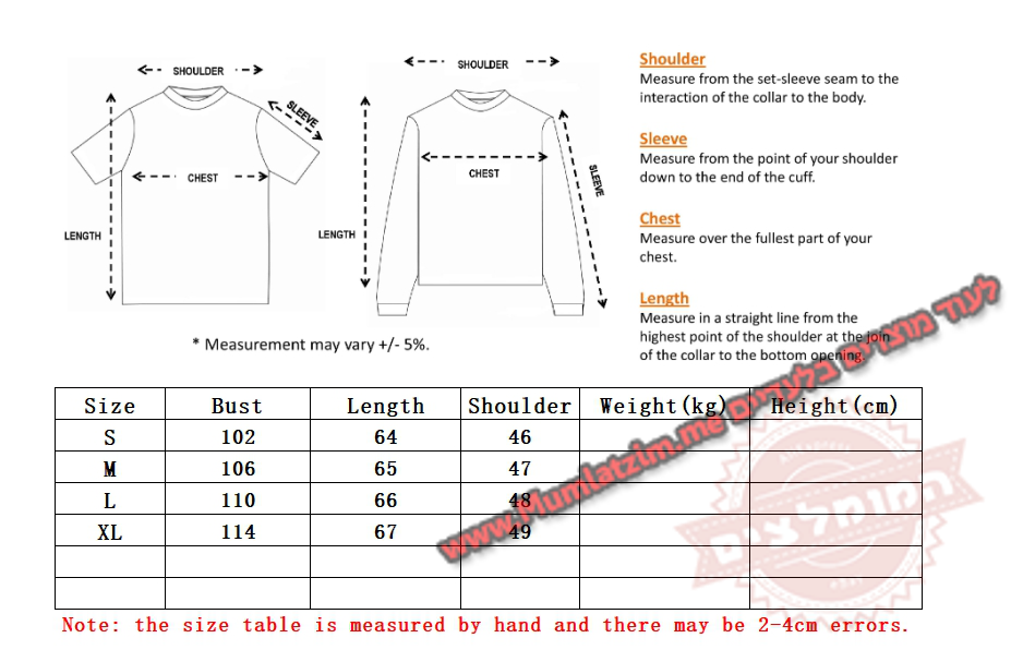 | לקרוא לפני ההזמנה! לא לשלוח למוכר הודעות המכילות תמונות או שמות של מותגים בעלי אקספרס! שליחת הודעות אלה מסכנות את המוכר ועלולות לגרום לסגירת החנות שלו. במידה ויש בעיה – לא לפתוח מחלוקות, לשלוח הודעה בעלי אקספרס למוכר שיש בעיה ואת מספר הווטסאפ שלכם והוא יפנה אליכם ויעזור! בנוסף – ניתן לפתוח קריאת שירות אצלנו ונענה בהקדם – פתיחת קריאה מפה קיבלתם את המוצר? מעולה! בבקשה לא להשאיר פידבק בחנות עם תמונה של המוצר! • המוכר מסתיר את המוצר, בעלי אקספרס כנראה יופיע מוצר אחר, בפועל המוכר יודע לשלוח את המוצר בדיוק כמו בתמונות פה למטה! לא לשלוח שום הודעה אחרת שלא קשורה למידה/החלפת צבע/משלוח – לא לבקש גלרייה/לא לבקש ווטסאפ/לא לרשום דברים שקשורים למותגים – כל מי שיעשה זאת ייחסם על ידי המוכר במידית
