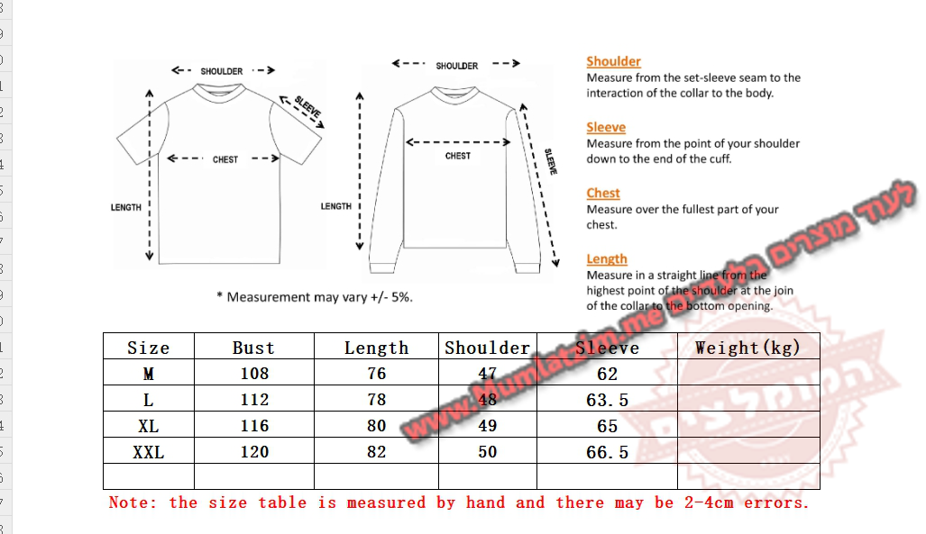 | לקרוא לפני ההזמנה! לא לשלוח למוכר הודעות המכילות תמונות או שמות של מותגים בעלי אקספרס! שליחת הודעות אלה מסכנות את המוכר ועלולות לגרום לסגירת החנות שלו. במידה ויש בעיה – לא לפתוח מחלוקות, לשלוח הודעה בעלי אקספרס למוכר שיש בעיה ואת מספר הווטסאפ שלכם והוא יפנה אליכם ויעזור! בנוסף – ניתן לפתוח קריאת שירות אצלנו ונענה בהקדם – פתיחת קריאה מפה קיבלתם את המוצר? מעולה! בבקשה לא להשאיר פידבק בחנות עם תמונה של המוצר! • המוכר מסתיר את המוצר, בעלי אקספרס כנראה יופיע מוצר אחר, בפועל המוכר יודע לשלוח את המוצר בדיוק כמו בתמונות פה למטה! לא לשלוח שום הודעה אחרת שלא קשורה למידה/החלפת צבע/משלוח – לא לבקש גלרייה/לא לבקש ווטסאפ/לא לרשום דברים שקשורים למותגים – כל מי שיעשה זאת ייחסם על ידי המוכר במידית