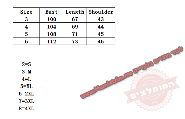• בחירת מידה לפי הטבלה ~ המלצה לקחת מידה מעל ישראל, לוודא בטבלה!