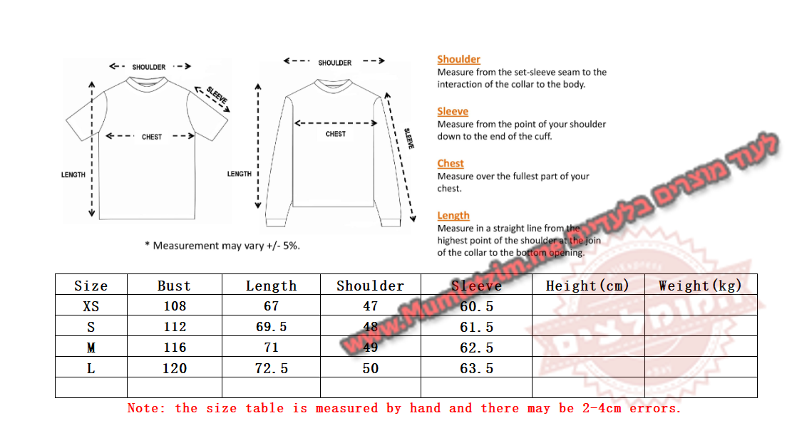 | לקרוא לפני ההזמנה! לא לשלוח למוכר הודעות המכילות תמונות או שמות של מותגים בעלי אקספרס! שליחת הודעות אלה מסכנות את המוכר ועלולות לגרום לסגירת החנות שלו. במידה ויש בעיה – לא לפתוח מחלוקות, לשלוח הודעה בעלי אקספרס למוכר שיש בעיה ואת מספר הווטסאפ שלכם והוא יפנה אליכם ויעזור! בנוסף – ניתן לפתוח קריאת שירות אצלנו ונענה בהקדם – פתיחת קריאה מפה קיבלתם את המוצר? מעולה! בבקשה לא להשאיר פידבק בחנות עם תמונה של המוצר! • המוכר מסתיר את המוצר, בעלי אקספרס כנראה יופיע מוצר אחר, בפועל המוכר יודע לשלוח את המוצר בדיוק כמו בתמונות פה למטה! לא לשלוח שום הודעה אחרת שלא קשורה למידה/החלפת צבע/משלוח – לא לבקש גלרייה/לא לבקש ווטסאפ/לא לרשום דברים שקשורים למותגים – כל מי שיעשה זאת ייחסם על ידי המוכר במידית