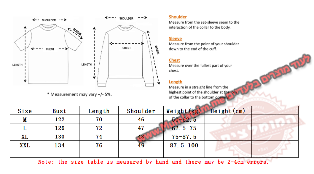 | לקרוא לפני ההזמנה! לא לשלוח למוכר הודעות המכילות תמונות או שמות של מותגים בעלי אקספרס! שליחת הודעות אלה מסכנות את המוכר ועלולות לגרום לסגירת החנות שלו. במידה ויש בעיה – לא לפתוח מחלוקות, לשלוח הודעה בעלי אקספרס למוכר שיש בעיה ואת מספר הווטסאפ שלכם והוא יפנה אליכם ויעזור! בנוסף – ניתן לפתוח קריאת שירות אצלנו ונענה בהקדם – פתיחת קריאה מפה קיבלתם את המוצר? מעולה! בבקשה לא להשאיר פידבק בחנות עם תמונה של המוצר! • המוכר מסתיר את המוצר, בעלי אקספרס כנראה יופיע מוצר אחר, בפועל המוכר יודע לשלוח את המוצר בדיוק כמו בתמונות פה למטה! לא לשלוח שום הודעה אחרת שלא קשורה למידה/החלפת צבע/משלוח – לא לבקש גלרייה/לא לבקש ווטסאפ/לא לרשום דברים שקשורים למותגים – כל מי שיעשה זאת ייחסם על ידי המוכר במידית