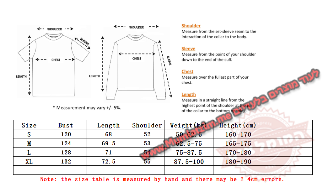 | לקרוא לפני ההזמנה! לא לשלוח למוכר הודעות המכילות תמונות או שמות של מותגים בעלי אקספרס! שליחת הודעות אלה מסכנות את המוכר ועלולות לגרום לסגירת החנות שלו. במידה ויש בעיה – לא לפתוח מחלוקות, לשלוח הודעה בעלי אקספרס למוכר שיש בעיה ואת מספר הווטסאפ שלכם והוא יפנה אליכם ויעזור! בנוסף – ניתן לפתוח קריאת שירות אצלנו ונענה בהקדם – פתיחת קריאה מפה קיבלתם את המוצר? מעולה! בבקשה לא להשאיר פידבק בחנות עם תמונה של המוצר! • המוכר מסתיר את המוצר, בעלי אקספרס כנראה יופיע מוצר אחר, בפועל המוכר יודע לשלוח את המוצר בדיוק כמו בתמונות פה למטה! לא לשלוח שום הודעה אחרת שלא קשורה למידה/החלפת צבע/משלוח – לא לבקש גלרייה/לא לבקש ווטסאפ/לא לרשום דברים שקשורים למותגים – כל מי שיעשה זאת ייחסם על ידי המוכר במידית