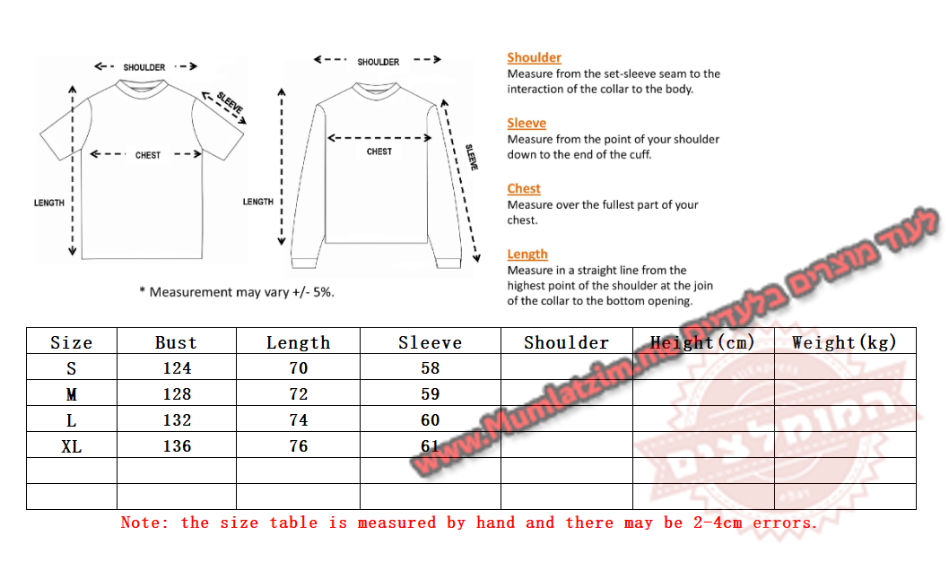 לקרוא לפני ההזמנה! לא לשלוח למוכר הודעות המכילות תמונות או שמות של מותגים בעלי אקספרס! שליחת הודעות אלה מסכנות את המוכר ועלולות לגרום לסגירת החנות שלו. במידה ויש בעיה – לא לפתוח מחלוקות, לשלוח הודעה בעלי אקספרס למוכר שיש בעיה ואת מספר הווטסאפ שלכם והוא יפנה אליכם ויעזור! בנוסף – ניתן לפתוח קריאת שירות אצלנו ונענה בהקדם – פתיחת קריאה מפה קיבלתם את המוצר? מעולה! בבקשה לא להשאיר פידבק בחנות עם תמונה של המוצר! • המוכר מסתיר את המוצר, בעלי אקספרס כנראה יופיע מוצר אחר, בפועל המוכר יודע לשלוח את המוצר בדיוק כמו בתמונות פה למטה! לא לשלוח שום הודעה אחרת שלא קשורה למידה/החלפת צבע/משלוח – לא לבקש גלרייה/לא לבקש ווטסאפ/לא לרשום דברים שקשורים למותגים – כל מי שיעשה זאת ייחסם על ידי המוכר במידית
