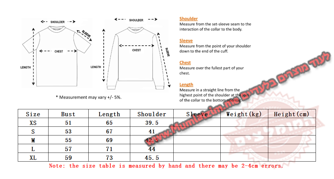 | לקרוא לפני ההזמנה! לא לשלוח למוכר הודעות המכילות תמונות או שמות של מותגים בעלי אקספרס! שליחת הודעות אלה מסכנות את המוכר ועלולות לגרום לסגירת החנות שלו. במידה ויש בעיה – לא לפתוח מחלוקות, לשלוח הודעה בעלי אקספרס למוכר שיש בעיה ואת מספר הווטסאפ שלכם והוא יפנה אליכם ויעזור! בנוסף – ניתן לפתוח קריאת שירות אצלנו ונענה בהקדם – פתיחת קריאה מפה קיבלתם את המוצר? מעולה! בבקשה לא להשאיר פידבק בחנות עם תמונה של המוצר! • המוכר מסתיר את המוצר, בעלי אקספרס כנראה יופיע מוצר אחר, בפועל המוכר יודע לשלוח את המוצר בדיוק כמו בתמונות פה למטה! לא לשלוח שום הודעה אחרת שלא קשורה למידה/החלפת צבע/משלוח – לא לבקש גלרייה/לא לבקש ווטסאפ/לא לרשום דברים שקשורים למותגים – כל מי שיעשה זאת ייחסם על ידי המוכר במידית