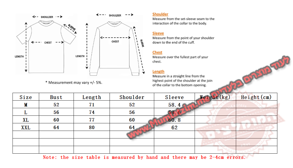 | לקרוא לפני ההזמנה! לא לשלוח למוכר הודעות המכילות תמונות או שמות של מותגים בעלי אקספרס! שליחת הודעות אלה מסכנות את המוכר ועלולות לגרום לסגירת החנות שלו. במידה ויש בעיה – לא לפתוח מחלוקות, לשלוח הודעה בעלי אקספרס למוכר שיש בעיה ואת מספר הווטסאפ שלכם והוא יפנה אליכם ויעזור! בנוסף – ניתן לפתוח קריאת שירות אצלנו ונענה בהקדם – פתיחת קריאה מפה קיבלתם את המוצר? מעולה! בבקשה לא להשאיר פידבק בחנות עם תמונה של המוצר! • המוכר מסתיר את המוצר, בעלי אקספרס כנראה יופיע מוצר אחר, בפועל המוכר יודע לשלוח את המוצר בדיוק כמו בתמונות פה למטה! לא לשלוח שום הודעה אחרת שלא קשורה למידה/החלפת צבע/משלוח – לא לבקש גלרייה/לא לבקש ווטסאפ/לא לרשום דברים שקשורים למותגים – כל מי שיעשה זאת ייחסם על ידי המוכר במידית