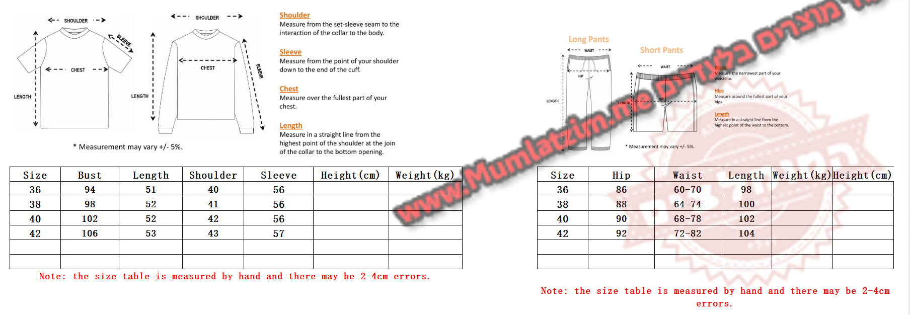 | לקרוא לפני ההזמנה! לא לשלוח למוכר הודעות המכילות תמונות או שמות של מותגים בעלי אקספרס! שליחת הודעות אלה מסכנות את המוכר ועלולות לגרום לסגירת החנות שלו. במידה ויש בעיה – לא לפתוח מחלוקות, לשלוח הודעה בעלי אקספרס למוכר שיש בעיה ואת מספר הווטסאפ שלכם והוא יפנה אליכם ויעזור! בנוסף – ניתן לפתוח קריאת שירות אצלנו ונענה בהקדם – פתיחת קריאה מפה קיבלתם את המוצר? מעולה! בבקשה לא להשאיר פידבק בחנות עם תמונה של המוצר! • המוכר מסתיר את המוצר, בעלי אקספרס כנראה יופיע מוצר אחר, בפועל המוכר יודע לשלוח את המוצר בדיוק כמו בתמונות פה למטה! לא לשלוח שום הודעה אחרת שלא קשורה למידה/החלפת צבע/משלוח – לא לבקש גלרייה/לא לבקש ווטסאפ/לא לרשום דברים שקשורים למותגים – כל מי שיעשה זאת ייחסם על ידי המוכר במידית