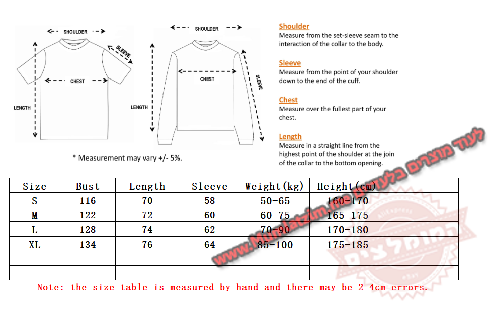 לקרוא לפני ההזמנה! לא לשלוח למוכר הודעות המכילות תמונות או שמות של מותגים בעלי אקספרס! שליחת הודעות אלה מסכנות את המוכר ועלולות לגרום לסגירת החנות שלו. במידה ויש בעיה – לא לפתוח מחלוקות, לשלוח הודעה בעלי אקספרס למוכר שיש בעיה ואת מספר הווטסאפ שלכם והוא יפנה אליכם ויעזור! בנוסף – ניתן לפתוח קריאת שירות אצלנו ונענה בהקדם – פתיחת קריאה מפה קיבלתם את המוצר? מעולה! בבקשה לא להשאיר פידבק בחנות עם תמונה של המוצר! • המוכר מסתיר את המוצר, בעלי אקספרס כנראה יופיע מוצר אחר, בפועל המוכר יודע לשלוח את המוצר בדיוק כמו בתמונות פה למטה! לא לשלוח שום הודעה אחרת שלא קשורה למידה/החלפת צבע/משלוח – לא לבקש גלרייה/לא לבקש ווטסאפ/לא לרשום דברים שקשורים למותגים – כל מי שיעשה זאת ייחסם על ידי המוכר במידית