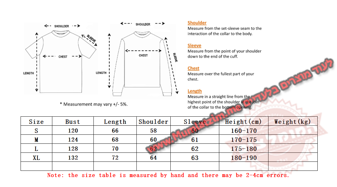 | לקרוא לפני ההזמנה! לא לשלוח למוכר הודעות המכילות תמונות או שמות של מותגים בעלי אקספרס! שליחת הודעות אלה מסכנות את המוכר ועלולות לגרום לסגירת החנות שלו. במידה ויש בעיה – לא לפתוח מחלוקות, לשלוח הודעה בעלי אקספרס למוכר שיש בעיה ואת מספר הווטסאפ שלכם והוא יפנה אליכם ויעזור! בנוסף – ניתן לפתוח קריאת שירות אצלנו ונענה בהקדם – פתיחת קריאה מפה קיבלתם את המוצר? מעולה! בבקשה לא להשאיר פידבק בחנות עם תמונה של המוצר! • המוכר מסתיר את המוצר, בעלי אקספרס כנראה יופיע מוצר אחר, בפועל המוכר יודע לשלוח את המוצר בדיוק כמו בתמונות פה למטה! לא לשלוח שום הודעה אחרת שלא קשורה למידה/החלפת צבע/משלוח – לא לבקש גלרייה/לא לבקש ווטסאפ/לא לרשום דברים שקשורים למותגים – כל מי שיעשה זאת ייחסם על ידי המוכר במידית