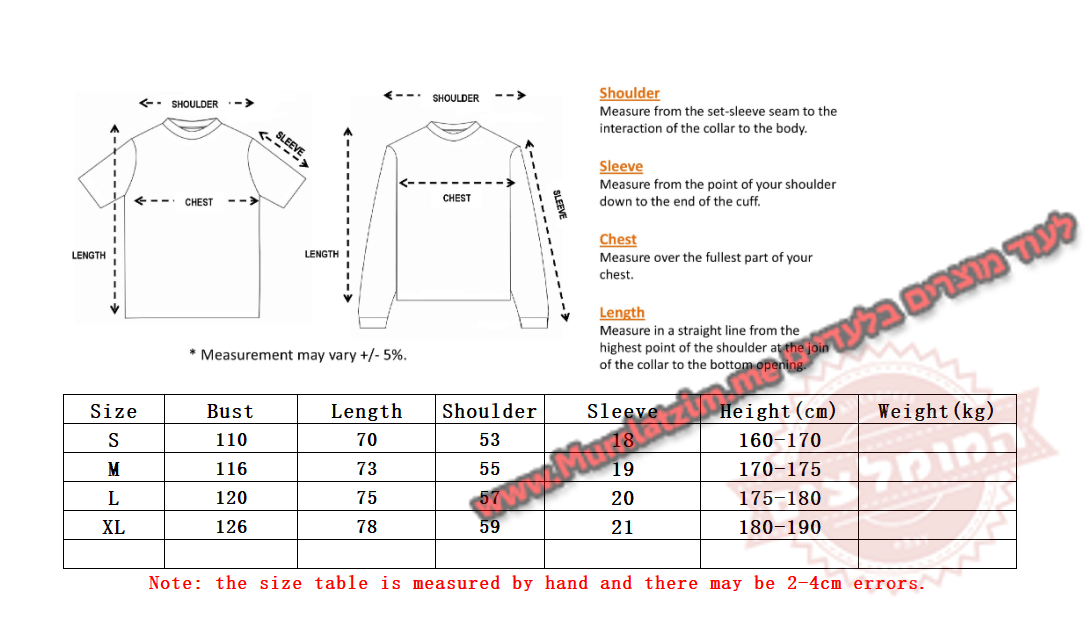 | לקרוא לפני ההזמנה! לא לשלוח למוכר הודעות המכילות תמונות או שמות של מותגים בעלי אקספרס! שליחת הודעות אלה מסכנות את המוכר ועלולות לגרום לסגירת החנות שלו. במידה ויש בעיה – לא לפתוח מחלוקות, לשלוח הודעה בעלי אקספרס למוכר שיש בעיה ואת מספר הווטסאפ שלכם והוא יפנה אליכם ויעזור! בנוסף – ניתן לפתוח קריאת שירות אצלנו ונענה בהקדם – פתיחת קריאה מפה קיבלתם את המוצר? מעולה! בבקשה לא להשאיר פידבק בחנות עם תמונה של המוצר! • המוכר מסתיר את המוצר, בעלי אקספרס כנראה יופיע מוצר אחר, בפועל המוכר יודע לשלוח את המוצר בדיוק כמו בתמונות פה למטה! לא לשלוח שום הודעה אחרת שלא קשורה למידה/החלפת צבע/משלוח – לא לבקש גלרייה/לא לבקש ווטסאפ/לא לרשום דברים שקשורים למותגים – כל מי שיעשה זאת ייחסם על ידי המוכר במידית