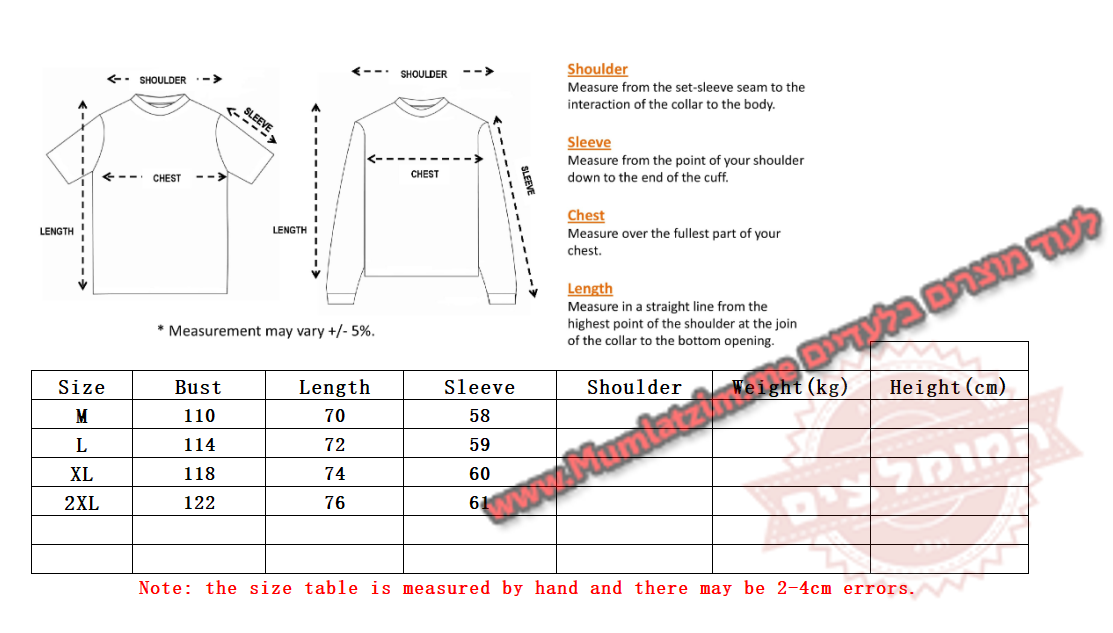 | לקרוא לפני ההזמנה! לא לשלוח למוכר הודעות המכילות תמונות או שמות של מותגים בעלי אקספרס! שליחת הודעות אלה מסכנות את המוכר ועלולות לגרום לסגירת החנות שלו. במידה ויש בעיה – לא לפתוח מחלוקות, לשלוח הודעה בעלי אקספרס למוכר שיש בעיה ואת מספר הווטסאפ שלכם והוא יפנה אליכם ויעזור! בנוסף – ניתן לפתוח קריאת שירות אצלנו ונענה בהקדם – פתיחת קריאה מפה קיבלתם את המוצר? מעולה! בבקשה לא להשאיר פידבק בחנות עם תמונה של המוצר! • המוכר מסתיר את המוצר, בעלי אקספרס כנראה יופיע מוצר אחר, בפועל המוכר יודע לשלוח את המוצר בדיוק כמו בתמונות פה למטה! לא לשלוח שום הודעה אחרת שלא קשורה למידה/החלפת צבע/משלוח – לא לבקש גלרייה/לא לבקש ווטסאפ/לא לרשום דברים שקשורים למותגים – כל מי שיעשה זאת ייחסם על ידי המוכר במידית