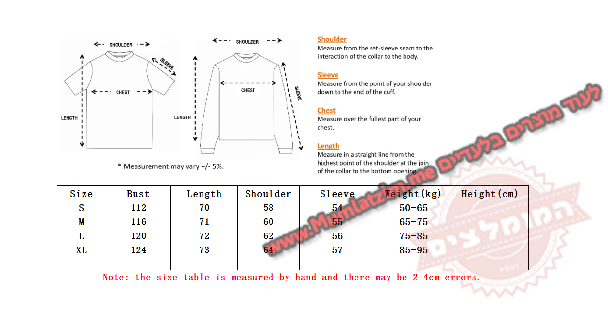 | לקרוא לפני ההזמנה! לא לשלוח למוכר הודעות המכילות תמונות או שמות של מותגים בעלי אקספרס! שליחת הודעות אלה מסכנות את המוכר ועלולות לגרום לסגירת החנות שלו. במידה ויש בעיה – לא לפתוח מחלוקות, לשלוח הודעה בעלי אקספרס למוכר שיש בעיה ואת מספר הווטסאפ שלכם והוא יפנה אליכם ויעזור! בנוסף – ניתן לפתוח קריאת שירות אצלנו ונענה בהקדם – פתיחת קריאה מפה קיבלתם את המוצר? מעולה! בבקשה לא להשאיר פידבק בחנות עם תמונה של המוצר! • המוכר מסתיר את המוצר, בעלי אקספרס כנראה יופיע מוצר אחר, בפועל המוכר יודע לשלוח את המוצר בדיוק כמו בתמונות פה למטה! לא לשלוח שום הודעה אחרת שלא קשורה למידה/החלפת צבע/משלוח – לא לבקש גלרייה/לא לבקש ווטסאפ/לא לרשום דברים שקשורים למותגים – כל מי שיעשה זאת ייחסם על ידי המוכר במידית