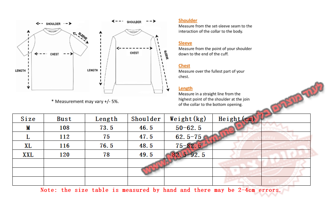 | לקרוא לפני ההזמנה! לא לשלוח למוכר הודעות המכילות תמונות או שמות של מותגים בעלי אקספרס! שליחת הודעות אלה מסכנות את המוכר ועלולות לגרום לסגירת החנות שלו. במידה ויש בעיה – לא לפתוח מחלוקות, לשלוח הודעה בעלי אקספרס למוכר שיש בעיה ואת מספר הווטסאפ שלכם והוא יפנה אליכם ויעזור! בנוסף – ניתן לפתוח קריאת שירות אצלנו ונענה בהקדם – פתיחת קריאה מפה קיבלתם את המוצר? מעולה! בבקשה לא להשאיר פידבק בחנות עם תמונה של המוצר! • המוכר מסתיר את המוצר, בעלי אקספרס כנראה יופיע מוצר אחר, בפועל המוכר יודע לשלוח את המוצר בדיוק כמו בתמונות פה למטה! לא לשלוח שום הודעה אחרת שלא קשורה למידה/החלפת צבע/משלוח – לא לבקש גלרייה/לא לבקש ווטסאפ/לא לרשום דברים שקשורים למותגים – כל מי שיעשה זאת ייחסם על ידי המוכר במידית