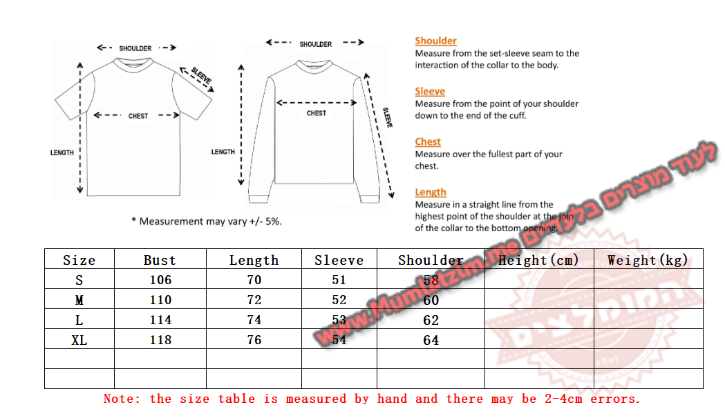 | לקרוא לפני ההזמנה! לא לשלוח למוכר הודעות המכילות תמונות או שמות של מותגים בעלי אקספרס! שליחת הודעות אלה מסכנות את המוכר ועלולות לגרום לסגירת החנות שלו. במידה ויש בעיה – לא לפתוח מחלוקות, לשלוח הודעה בעלי אקספרס למוכר שיש בעיה ואת מספר הווטסאפ שלכם והוא יפנה אליכם ויעזור! בנוסף – ניתן לפתוח קריאת שירות אצלנו ונענה בהקדם – פתיחת קריאה מפה קיבלתם את המוצר? מעולה! בבקשה לא להשאיר פידבק בחנות עם תמונה של המוצר! • המוכר מסתיר את המוצר, בעלי אקספרס כנראה יופיע מוצר אחר, בפועל המוכר יודע לשלוח את המוצר בדיוק כמו בתמונות פה למטה! לא לשלוח שום הודעה אחרת שלא קשורה למידה/החלפת צבע/משלוח – לא לבקש גלרייה/לא לבקש ווטסאפ/לא לרשום דברים שקשורים למותגים – כל מי שיעשה זאת ייחסם על ידי המוכר במידית