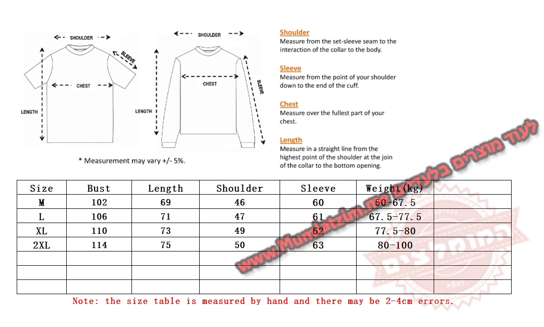 | לקרוא לפני ההזמנה! לא לשלוח למוכר הודעות המכילות תמונות או שמות של מותגים בעלי אקספרס! שליחת הודעות אלה מסכנות את המוכר ועלולות לגרום לסגירת החנות שלו. במידה ויש בעיה – לא לפתוח מחלוקות, לשלוח הודעה בעלי אקספרס למוכר שיש בעיה ואת מספר הווטסאפ שלכם והוא יפנה אליכם ויעזור! בנוסף – ניתן לפתוח קריאת שירות אצלנו ונענה בהקדם – פתיחת קריאה מפה קיבלתם את המוצר? מעולה! בבקשה לא להשאיר פידבק בחנות עם תמונה של המוצר! • המוכר מסתיר את המוצר, בעלי אקספרס כנראה יופיע מוצר אחר, בפועל המוכר יודע לשלוח את המוצר בדיוק כמו בתמונות פה למטה! לא לשלוח שום הודעה אחרת שלא קשורה למידה/החלפת צבע/משלוח – לא לבקש גלרייה/לא לבקש ווטסאפ/לא לרשום דברים שקשורים למותגים – כל מי שיעשה זאת ייחסם על ידי המוכר במידית