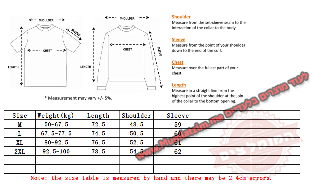 | לקרוא לפני ההזמנה! לא לשלוח למוכר הודעות המכילות תמונות או שמות של מותגים בעלי אקספרס! שליחת הודעות אלה מסכנות את המוכר ועלולות לגרום לסגירת החנות שלו. במידה ויש בעיה – לא לפתוח מחלוקות, לשלוח הודעה בעלי אקספרס למוכר שיש בעיה ואת מספר הווטסאפ שלכם והוא יפנה אליכם ויעזור! בנוסף – ניתן לפתוח קריאת שירות אצלנו ונענה בהקדם – פתיחת קריאה מפה קיבלתם את המוצר? מעולה! בבקשה לא להשאיר פידבק בחנות עם תמונה של המוצר! • המוכר מסתיר את המוצר, בעלי אקספרס כנראה יופיע מוצר אחר, בפועל המוכר יודע לשלוח את המוצר בדיוק כמו בתמונות פה למטה! לא לשלוח שום הודעה אחרת שלא קשורה למידה/החלפת צבע/משלוח – לא לבקש גלרייה/לא לבקש ווטסאפ/לא לרשום דברים שקשורים למותגים – כל מי שיעשה זאת ייחסם על ידי המוכר במידית