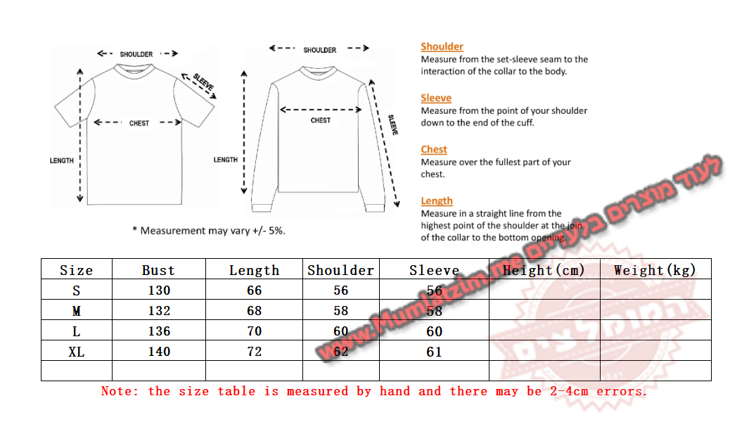 | לקרוא לפני ההזמנה! לא לשלוח למוכר הודעות המכילות תמונות או שמות של מותגים בעלי אקספרס! שליחת הודעות אלה מסכנות את המוכר ועלולות לגרום לסגירת החנות שלו. במידה ויש בעיה – לא לפתוח מחלוקות, לשלוח הודעה בעלי אקספרס למוכר שיש בעיה ואת מספר הווטסאפ שלכם והוא יפנה אליכם ויעזור! בנוסף – ניתן לפתוח קריאת שירות אצלנו ונענה בהקדם – פתיחת קריאה מפה קיבלתם את המוצר? מעולה! בבקשה לא להשאיר פידבק בחנות עם תמונה של המוצר! • המוכר מסתיר את המוצר, בעלי אקספרס כנראה יופיע מוצר אחר, בפועל המוכר יודע לשלוח את המוצר בדיוק כמו בתמונות פה למטה! לא לשלוח שום הודעה אחרת שלא קשורה למידה/החלפת צבע/משלוח – לא לבקש גלרייה/לא לבקש ווטסאפ/לא לרשום דברים שקשורים למותגים – כל מי שיעשה זאת ייחסם על ידי המוכר במידית