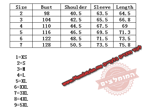 • בחירת מידה לפי הטבלה ~ כמו בארץ