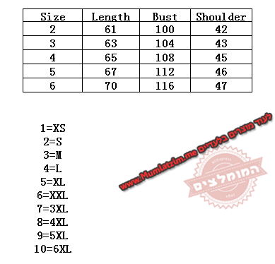בחירת מידה לפי הטבלה – לקחת מידה מעל ישראל, לוודא