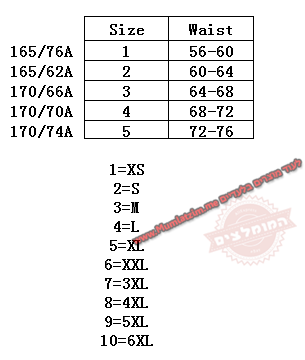 בחירת מידה לפי הטבלה –