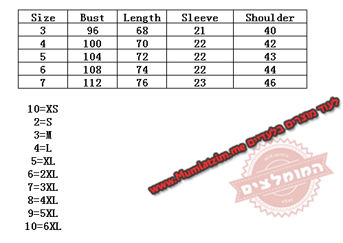 בחירת מידה לפי הטבלה – לקחת 2 מידות מעל ישראל, לוודא