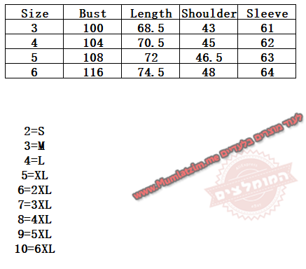 בחירת מידה לפי הטבלה – לקחת 1-2 מידות מעל ישראל, לוודא