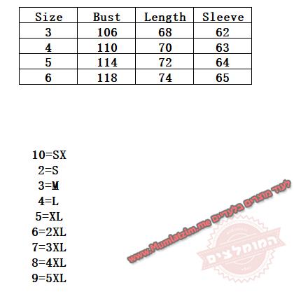 בחירת מידה לפי הטבלה – לקחת מידה מעל ישראל, לוודא