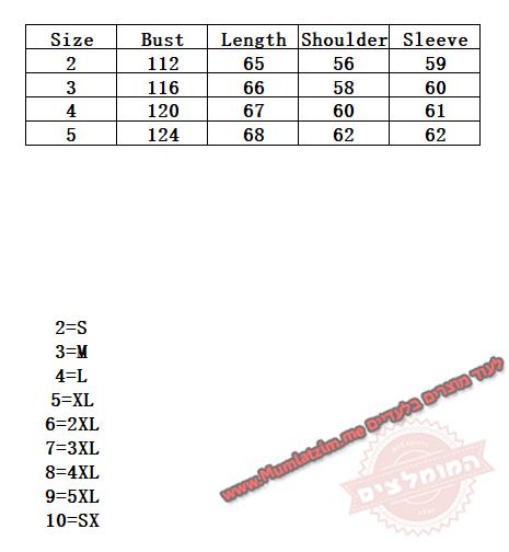 בחירת מידה לפי הטבלה – בערך זהה לארץ