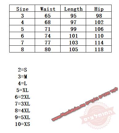 בחירת מידה לפי הטבלה –