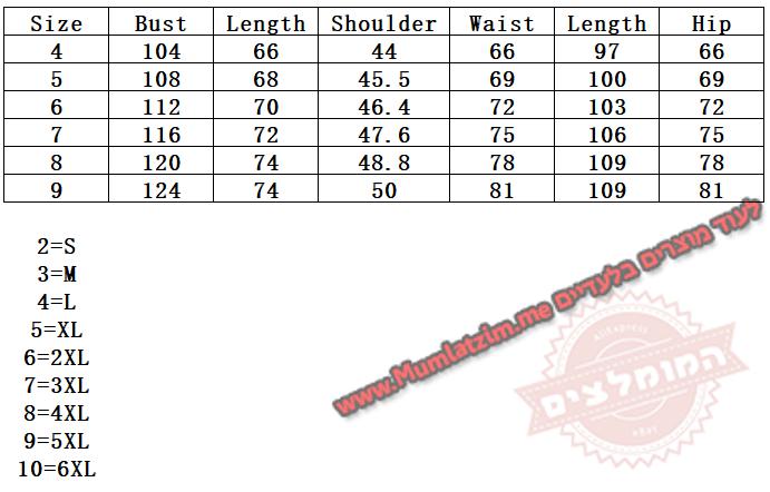 בחירת מידה לפי הטבלה – לקחת 3 מידות מעל ישראל, לוודא