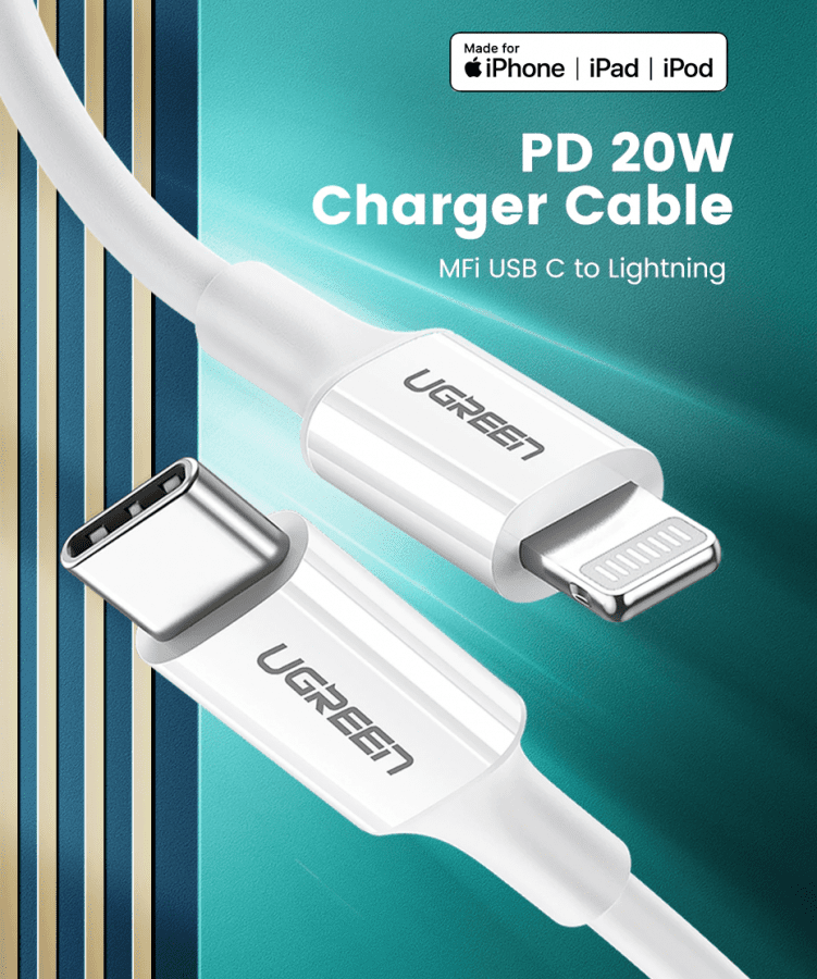 כבל טעינה UGREEN לאייפון עם אישור MFi של אפל לטעינה של PD 20W במחירים מעולים עם קופון בלעדי!