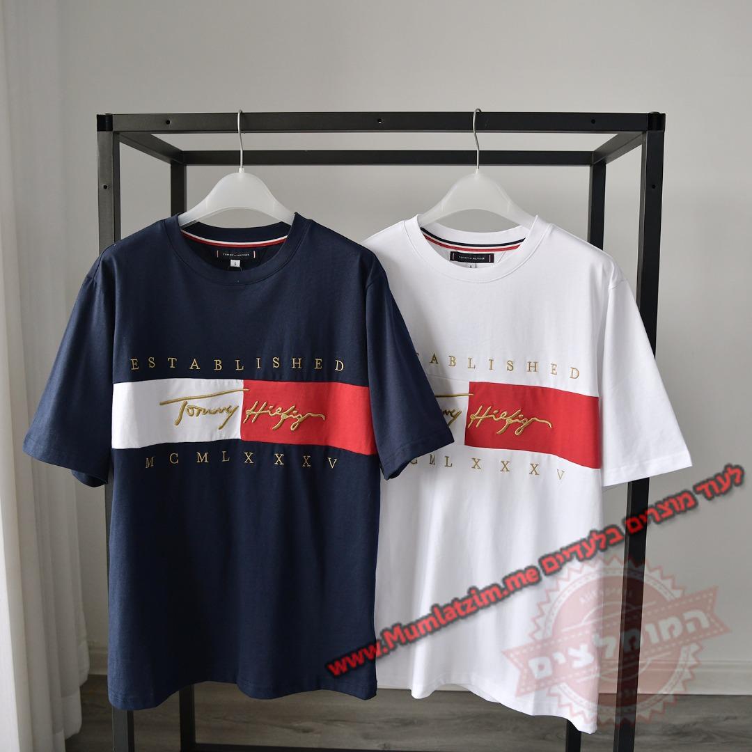 🌟 בלעדי למומלצים! 🌟חולצות טישרט טומי הילפיגר לגברים סמל אריגה גדול ב 77₪/23.88$ כולל משלוח!